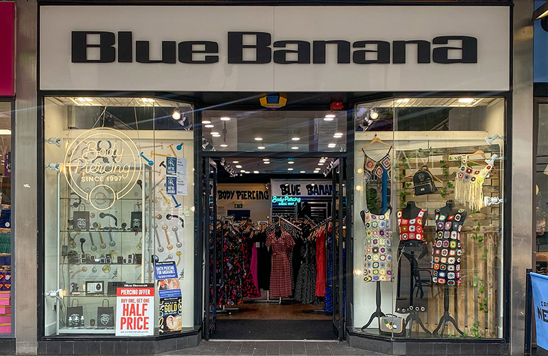 Blue Banana Leicester ist bereit, dir alle alternativen Dinge zu bieten. Du wirst Looks finden, die mit deinem Gothic-, Alternative-, Hexen- und Punk-Look harmonieren und dir mit einer Reihe von Artikeln helfen können, darunter Kleidung, Schuhe, Accessoires und Haarfärbemittel. Eingebettet in unser Geschäft befindet sich ein professionelles Piercingstudio, das von unseren ausgebildeten Piercern geführt wird. Weitere Informationen zu den Blue Banana-Piercingpreisen in Leicester und zu Altersbeschränkungen findest du auf unserer Piercing-Informationsseite. Informiere dich hier über die Öffnungszeiten von Blue Banana Leicester, bevor du in den Laden oder das Piercingstudio gehst.