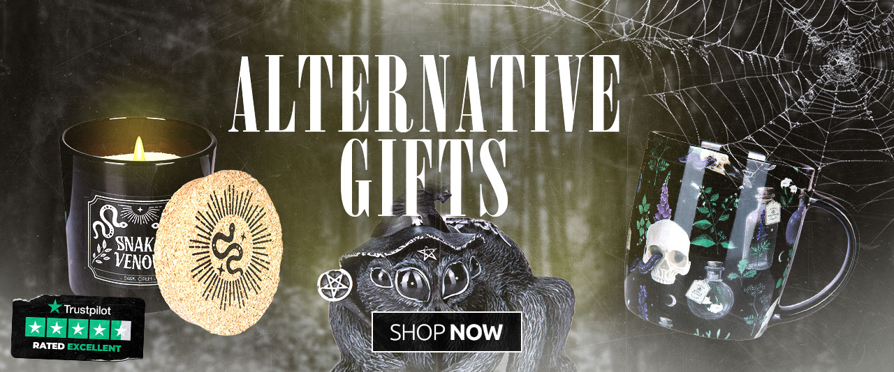 Disponemos también de una gama de regalos y artículos para el hogar, por lo que Blue Banana puede ser tu ventanilla única de decoración y ropa alternativa en línea. Con adornos de alta calidad de Alchemy Gothic y Nemesis Now, puedes decorar tu habitación o tu hogar a tu gusto hasta que coincida con tu estética gótica. Desde gatos de brujas hasta divertidas figuritas de calaveras, Blue Banana tiene todo lo que necesitas para un diseño alternativo para tu hogar.
